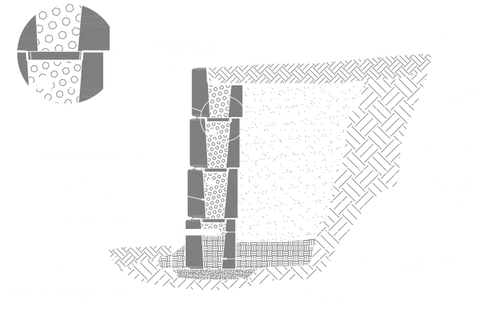 Geogrid Reinforced Retaining Wall bekerja dengan mengombinasikan blok beton MagnumStone, lapisan geogrid, dan tanah timbunan terpilih menjadi satu sistem struktur penahan tanah yang stabil dan kuat.