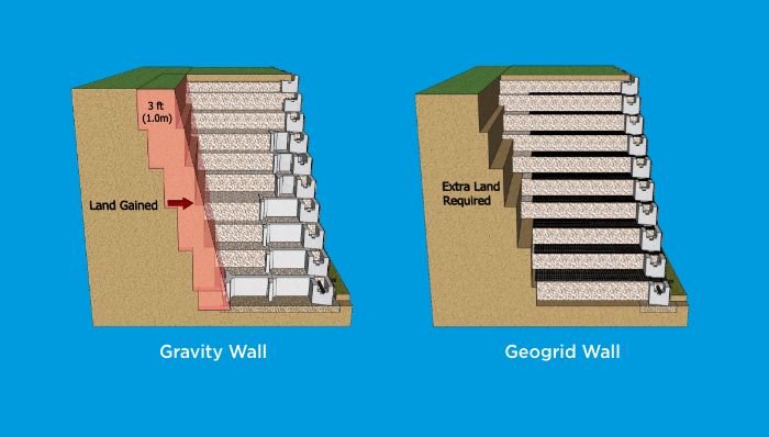 Dengan menambah kedalaman dinding sebesar 2 ft (0,61 m) atau 4 ft (1,2 m), ekstender ini membantu meningkatkan tinggi dan stabilitas gravity wall secara signifikan. Peningkatan ini memberikan performa struktural yang lebih kuat dan konsisten, sehingga dapat diandalkan oleh para desainer, kontraktor, maupun pemilik lahan untuk berbagai kebutuhan konstruksi.