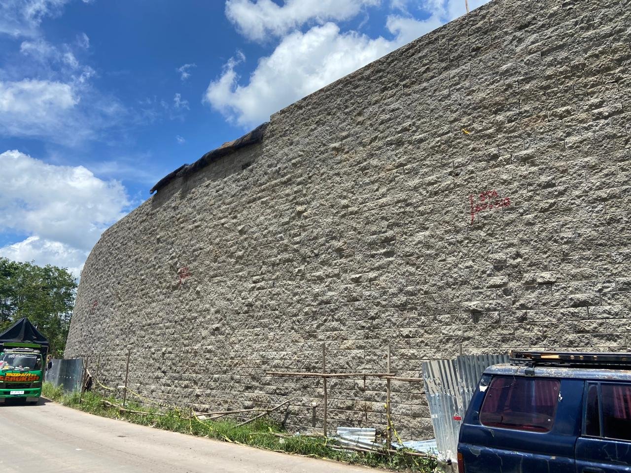- Pembangunan dinding penahan tanah pada area perbukitan,